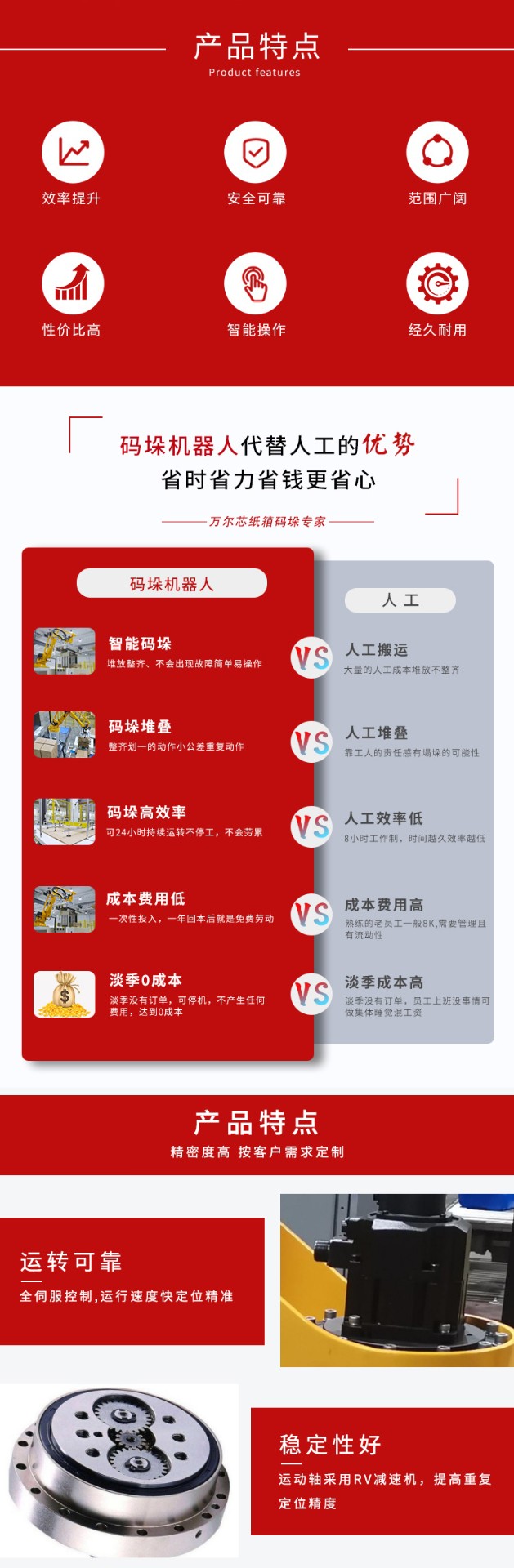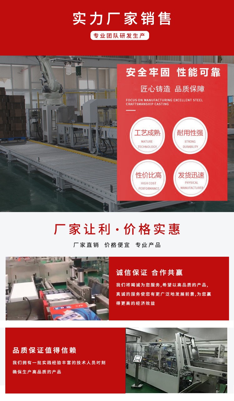 介紹:大型機械手碼垛機是一種高度智能化的包裝設備,主要由大型機械手臂、先進的控制系統、傳感器和夾具組成。它具備強大的抓取能力和承載能力,可以自動地完成大規模產品的抓取、碼垛和放置任務。大型機械手碼垛機通常應用于高產、大批量生產的生產線,可以顯著提升生產效率,降低人力成本,同時保證產品的穩定性和包裝質量的一致性。這種機器人碼垛機廣泛應用于各行各業,如物流、汽車、電子、建材等領域,為企業實現智能化、自動化生產提供了有力支持。其先進的技術和靈活性,使其成為現代化生產線不可或缺的重要設備。